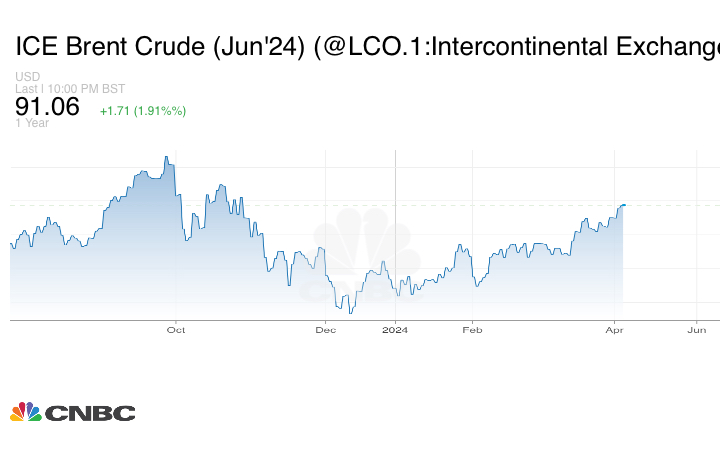 وربح سعر خام برنت عقد تسليم يونيو/ حزيران 1.43 سنتاً أي 1.60% ليصل إلى أكثر من 90 دولاراً للمرة الأولى له في 5 أشهر.