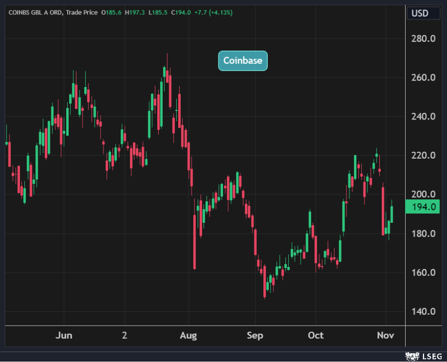 ارتفع سهم Coinbase بأكثر من 4% في جلسة الثلاثاء مسجلاً ثالث مكاسب يومية على التوالي بدعم من ارتفاع عملة البتكوين بنحو 3% حيث وضع ترامب نفسه كحليف للقطاع.