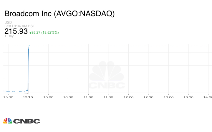 قفز سهم شركة برودكوم Broadcom بنحو 20% بعد أن أعلنت عن نتائج أعمالها للربع الرابع من العام المالي مع تحقيق أرباح أفضل من المتوقع. وقالت إن إيرادات الذكاء الاصطناعي لهذا العام تضاعفت أكثر من ثلاثة أضعاف.