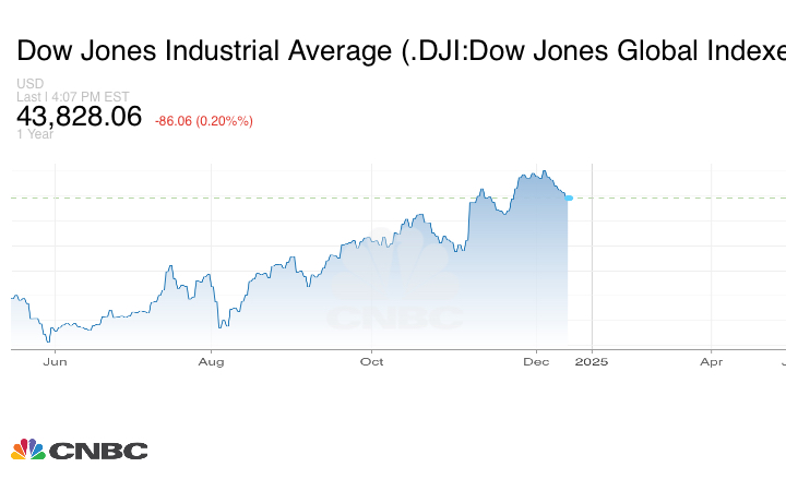 فيما خسر مؤشر داو جونز الصناعي 86 نقطة أو 0.20%عند 43.828.06 نقطة.