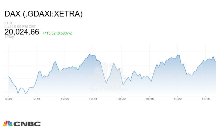 كما أغلق مؤشر DAX الألماني الجلسة على ارتفاع 115.52 نقطة أو بنسبة 0.58% إلى مستوى 20024.66 نقطة.