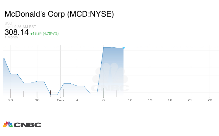 ارتفعت أسهم سلسلة مطاعم ماكدونالدز بنسبة 4.65% في سوق ما قبل السوق حتى بعد أن أعلنت شركة الوجبات السريعة العملاقة عن نتائج متباينة للربع الرابع.