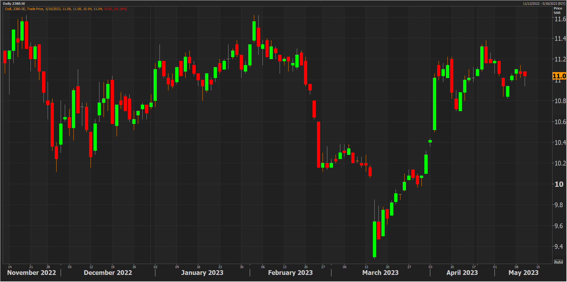وكان سهم بترو رابغ قد تراجع بنحو 0.2% ليغلق عند مستويات 11 ريالاً في جلسة 10 مايو قبل إعلان النتائج المالية.