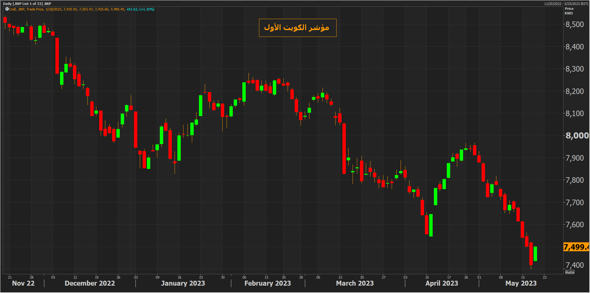 وارتد مؤشر الكويت الأول من أدنى مستوياته في عام ونصف مرتفعاً بأكثر من 1% في جلسة الخميس، ولكنه سجل خسائر أسبوعية بنحو 2.2% متراجعاً للأسبوع الثالث على التوالي.