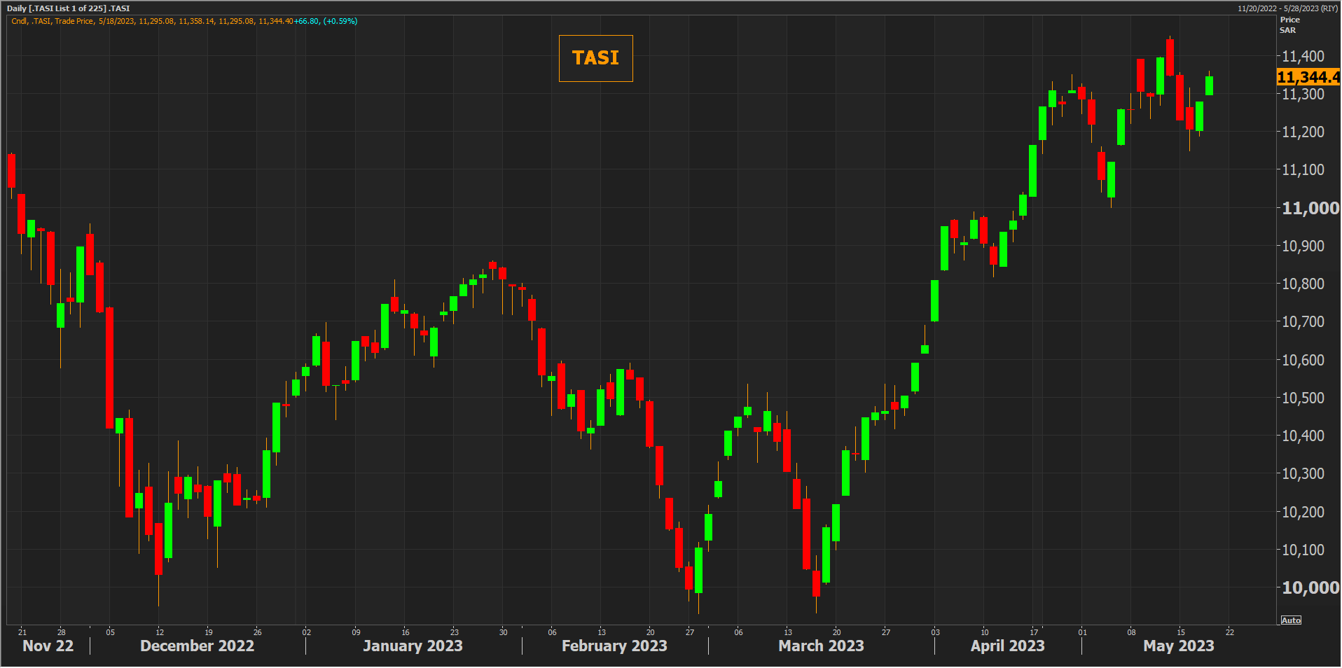 وسجل المؤشر السعودي خسائر بنحو 0.4% بالأسبوع الثالث من مايو بعد مكاسب بـ 2.5% في الأسبوع الذي سبقه.