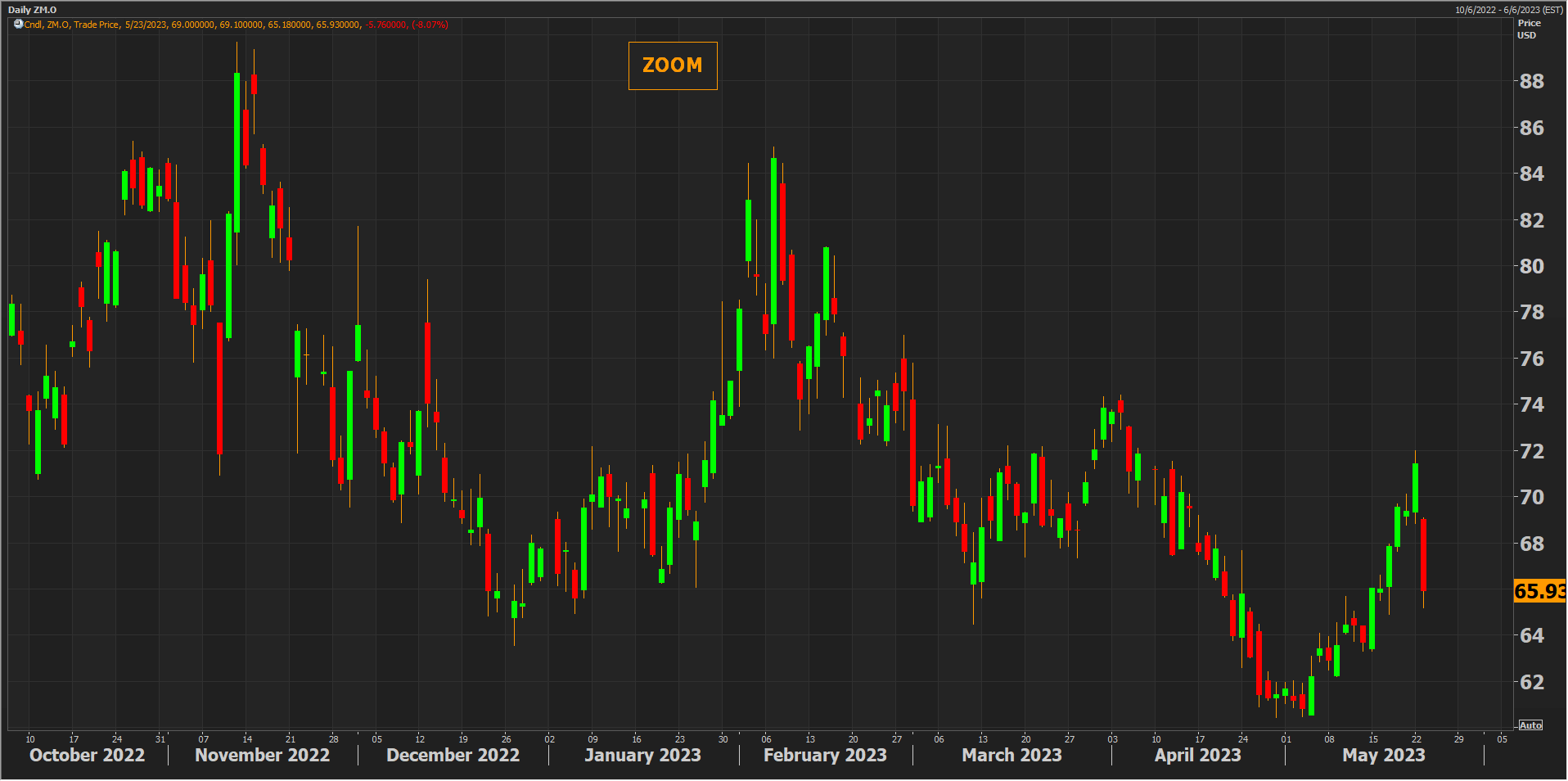 هبط سهم منصة مكالمات الفيديو Zoom بأكثر من 8% مسجلاً أكبر خسارة يومية في 7 أشهر ومتراجعاً من أعلى مستوياته في 6 أسابيع
