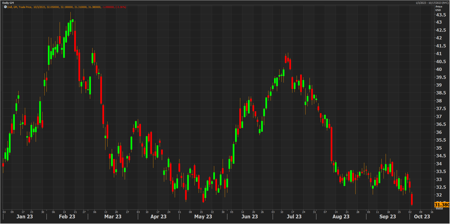 وجاءت هذه الخسائر على الرغم من إعلان الشركة عن زيادة تسليمات السيارات بنسبة %21 في الربع الثالث مع استمرار أخبار إضراب عمال السيارات بالضغط على السهم.