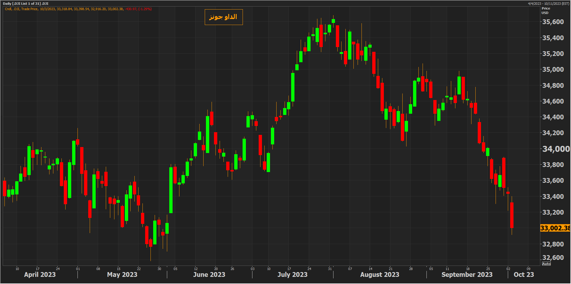 تراجع مؤشر الداو جونز بنسبة 1.3% أي ما يعادل نحو 430 نقطة في جلسة الثلاثاء مسجلاً أكبر خسارة يومية له في أكثر من 6 أشهر.