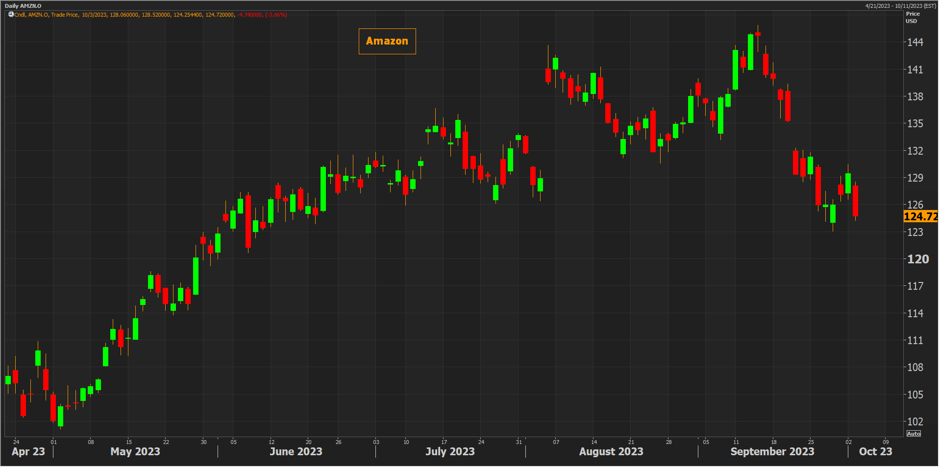 تراجع سهم Amazon بنسبة 3.7% في جلسة الثلاثاء مسجلاً أدنى إغلاق له في 4 أشهر لتفقد الشركة نحو 49 مليار دولار من قيمتها السوقية في يوم واحد.