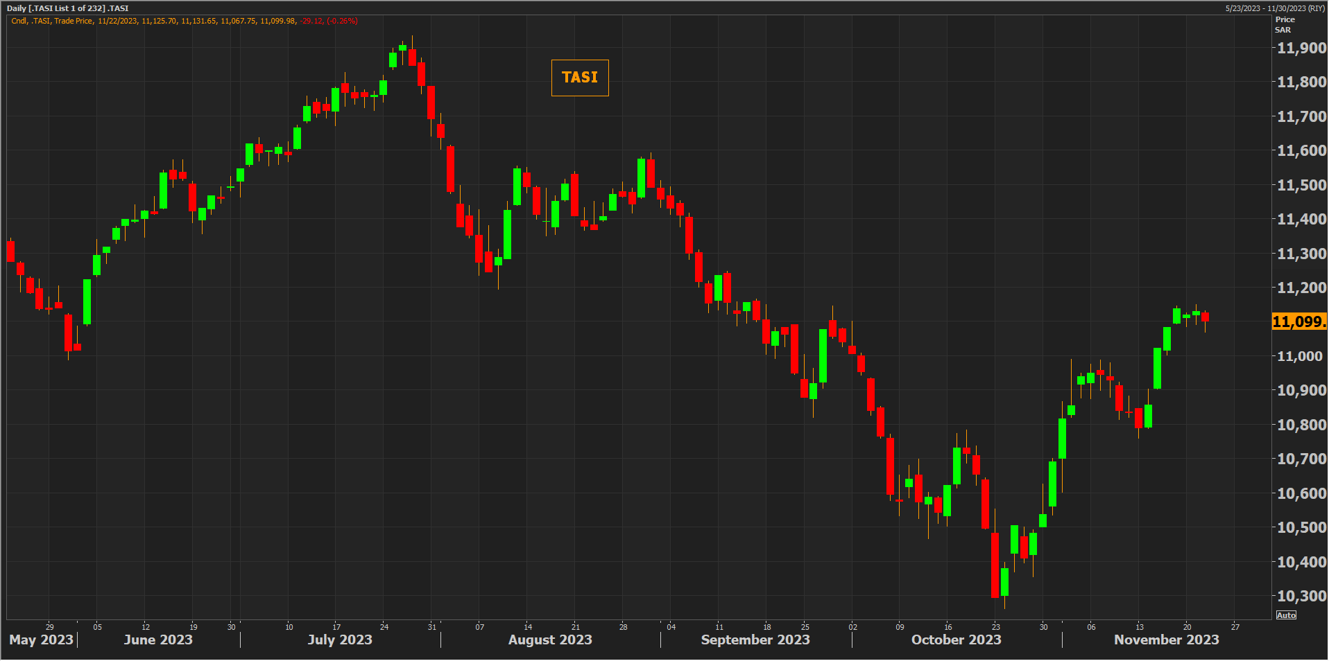 تراجع مؤشر السوق الرئيسية بنحو 0.3% في جلسة الأربعاء وسط سيولة ضعيفة نسبياً بلغت 4.2 مليار ريال وانخفاض 146 سهماً من أصل 231 شركة مدرجة