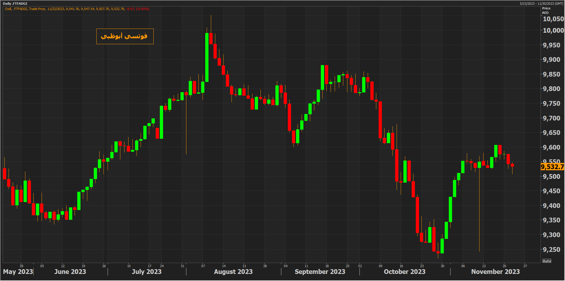في حين ارتفع مؤشر سوق دبي بنسبة 0.3% بدعم من ارتفاع سهمي دبي للاستثمار وأرامكس بنسبة 2.6% و2.4% على التوالي.