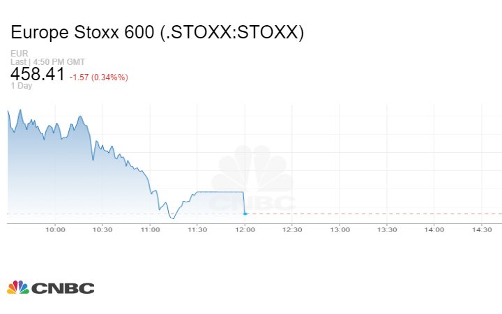 سجل مؤشر ‏‎STOXX600‎‏ تراجعاً بلغت نسبته 0.34%‏، عند 458.41 نقطة، وهبطت أسهم الرعاية الصحية 0.6%.