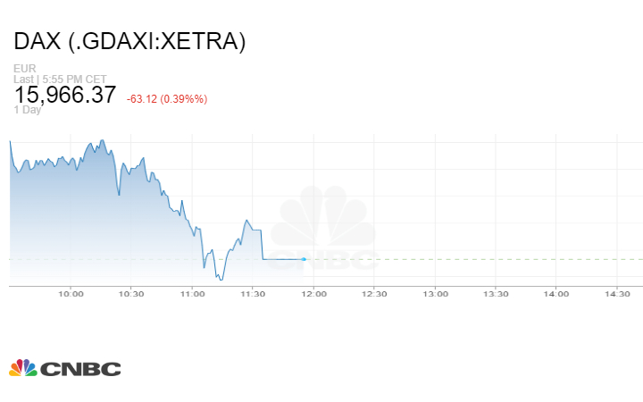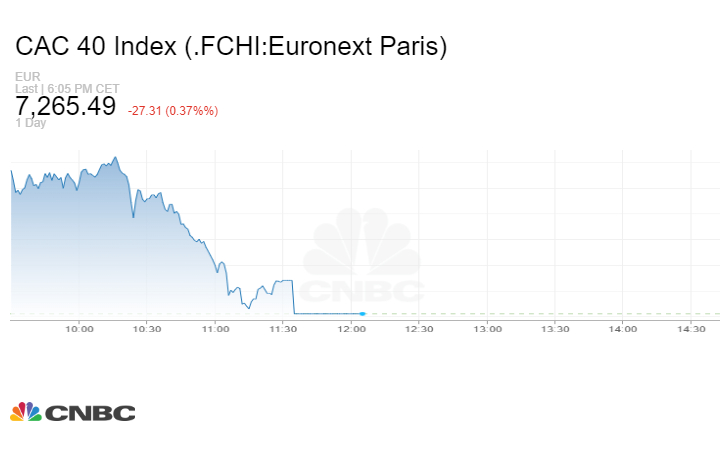 أما مؤشر CAC‏ الفرنسي، فقد سجل انخفاضاً في جلسة بداية الأسبوع بنسبة 0.37%‏، مغلقاً عند 7265.49 نقطة. كذلك مؤشر DAX‏ الألماني، والذي أغلق عند مستوى 15966.37 نقطة، ليسجل بذلك تراجعاً نسبته 0.39%‏.