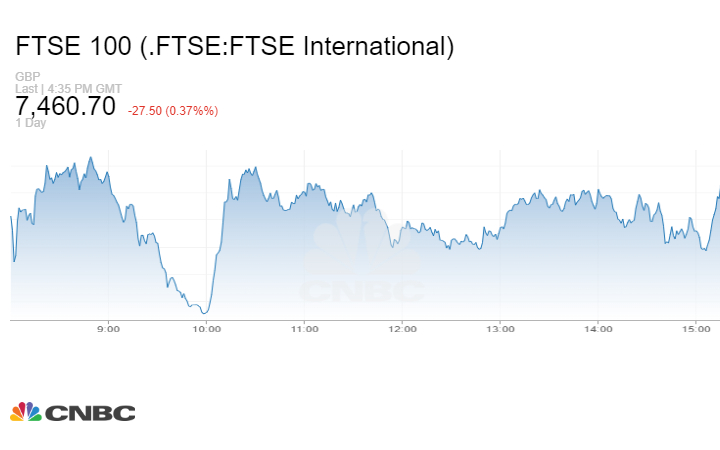 وانخفض مؤشر FTSE‏ البريطاني بنسبة 0.37%‏ مغلقاً عند 7460.70 نقطة.