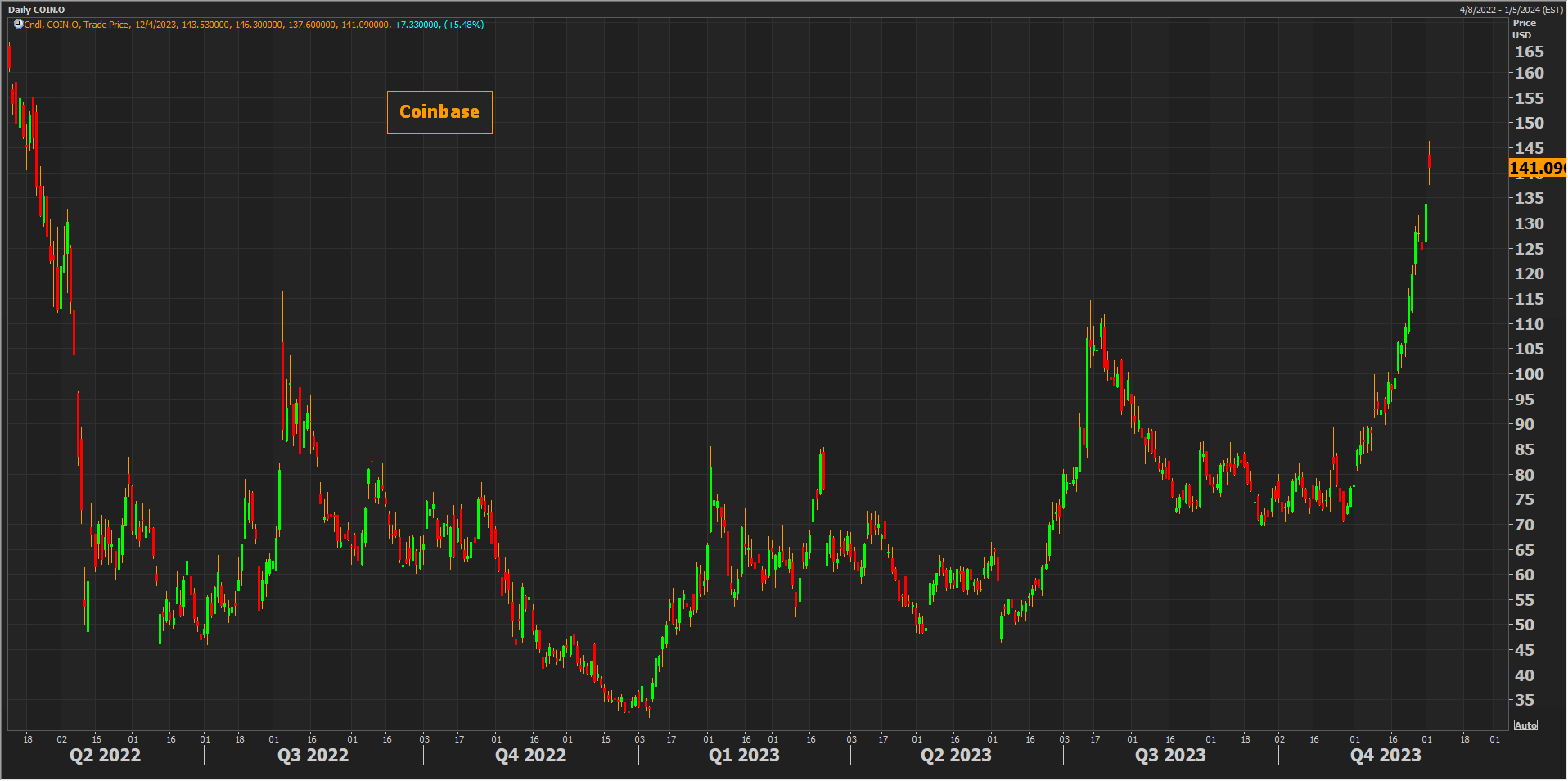 قفز سهم Coinbase بأكثر من 5% في جلسة الإثنين إلى أعلى مستوياته في 19 شهراً، لتضيف الشركة نحو ملياري دولار إلى قيمتها السوقية في يوم واحد.