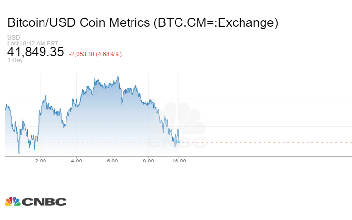 انخفض سعر العملة المشفرة أخيراً بأكثر من 3% ليصل إلى 42,151.38 دولارًا، وفقًا لـ Coinbase، بعد انخفاض كبير ليلة الأحد وصل إلى مستوى منخفض نحو حوالي 40,300 دولار.