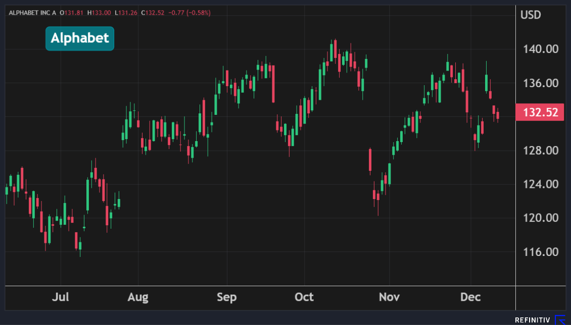 عاكس سهم Alphabet الاتجاه الصاعد لأغلب أسهم التكنولوجيا الكٌبرى في جلسة الثلاثاء منخفضاً بنسبة 0.6% ليسجل ثالث خسارة يومية على التوالي، وفقدت الشركة 57 مليار دولار من قيمتها السوقية في آخر 3 جلسات.
