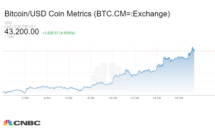 وعززت الـ Bitcoin مكاسبها بعد قرار الفدرالي الأميركي، لتربح أكثر من ألفي دولار، بنسبة ارتفاع تقارب الـ 5%، مسجلة أكثر من 43 ألف دولار.