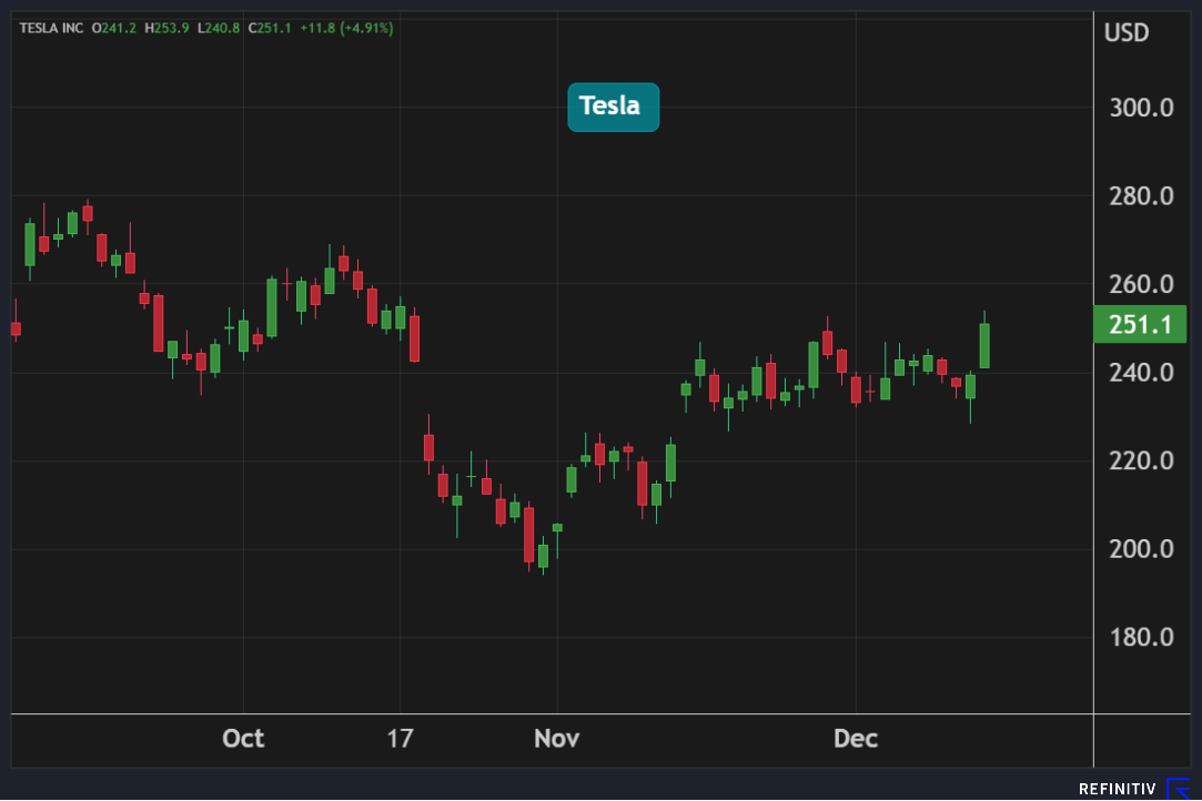 قفز سهم Tesla بنحو 5% في جلسة الخميس مسجلاً أعلى إغلاق له في شهرين بدعم من انخفاض عوائد السندات، لتضيف الشركة 37 مليار دولار إلى قيمتها السوقية في يوم واحد.