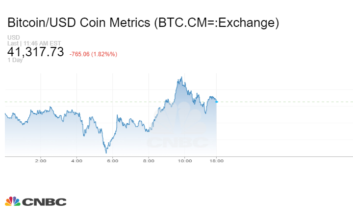 هبطت عملةالـ Bitcoin بنحو 2% نحو مستوى 41.317 دولار تقريباً. كذلك شقيتها الصغرى عملة الـ Ethereum والتي تراجعت بحوالي 4% مسجلة 2.156 دولار تقريباً.