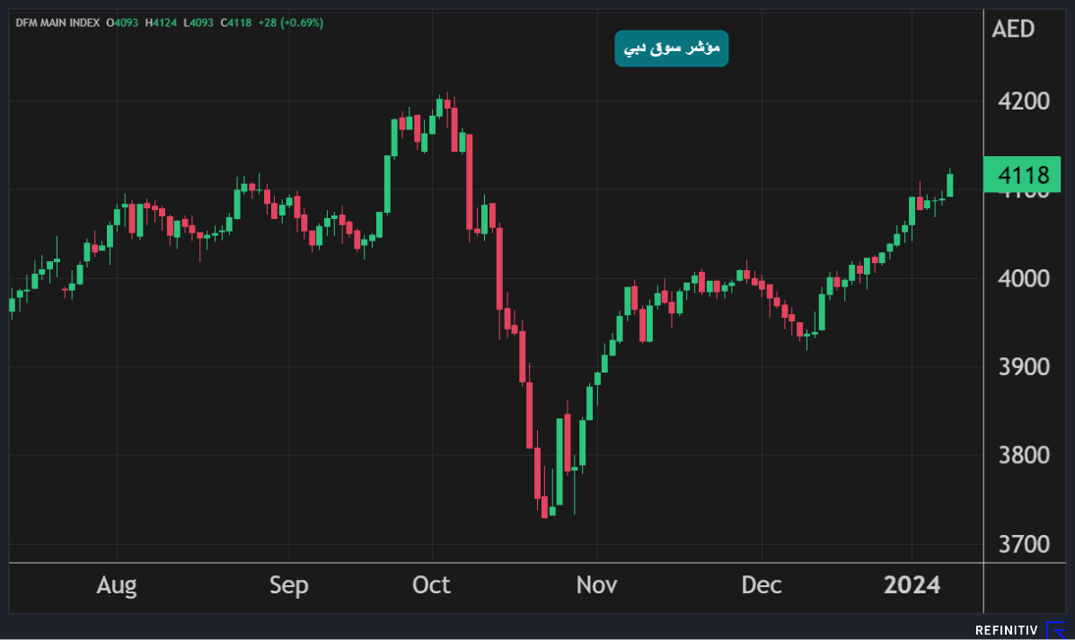 وفي أسواق الإمارات، ارتفع مؤشر سوق دبي بنسبة 0.7% إلى أعلى مستوياته في 3 أشهر بدعم من ارتفاع سهمي إعمار العقارية وديوا بنسبة 1% و1.6% على التوالي.