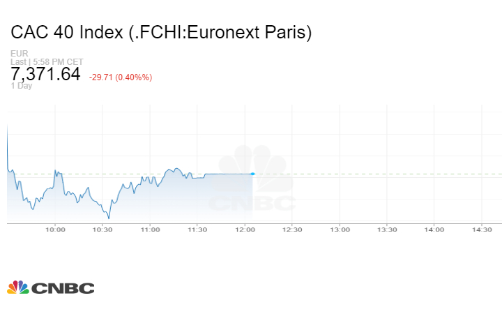 كما أغلق مؤشر CAC الفرنسي، بنهاية تعاملات الجمعة، عند مستوى 7,371.64 نقطة، مسجلاً تراجع بنحو 0.40%.