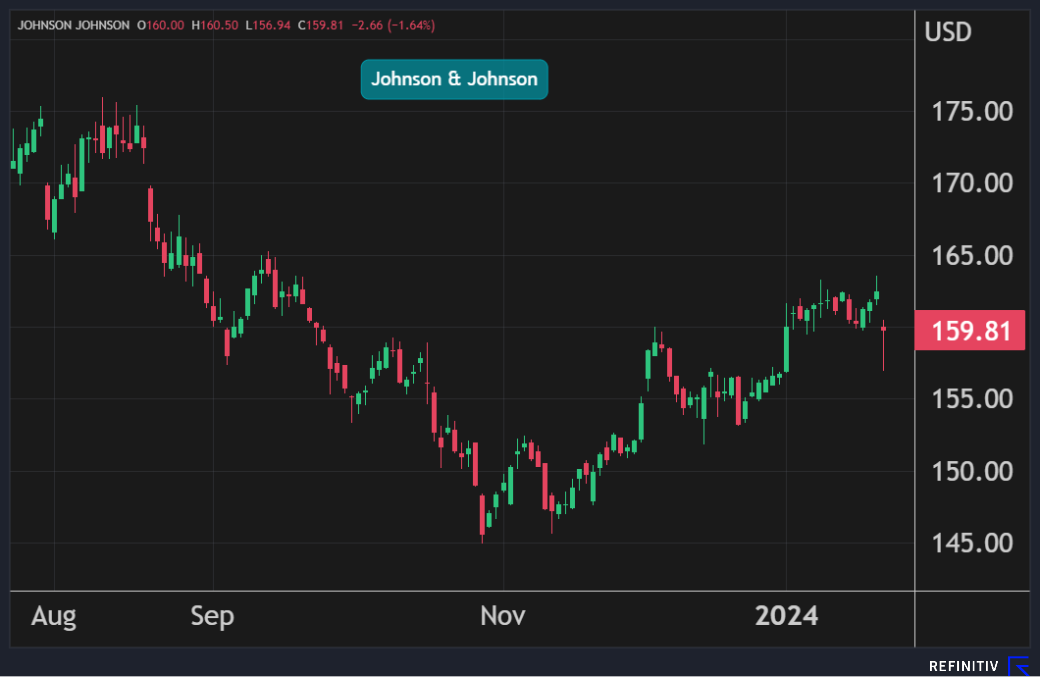 تراجع سهم Johnson & Johnson بنسبة 1.6% في جلسة الثلاثاء مسجلاً أعلى خسارة يومية في شهر، لتخسر الشركة 6 مليارات دولار من قيمتها السوقية في يوم واحد.