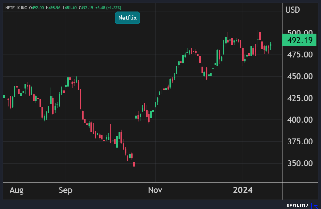ارتفع سهم Netflix بنسبة 1.3% في جلسة الثلاثاء ليغلق بالقرب من أعلى مستوياته في نحو عامين قبيل إعلان النتائج المالية، وواصل السهم المكاسب في التعاملات الممتدة بعد انتهاء الجلسة بعد إعلان الشركة عن إيرادات بأعلى من التوقعات.