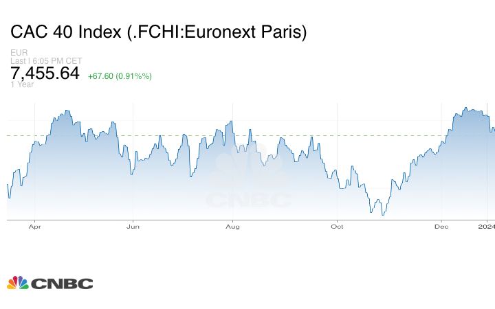 كذلك مؤشر CAC الفرنسي، فقد أغلق مرتفعاً بنسبة 0.91% عند مستوى 7455 نقطة.