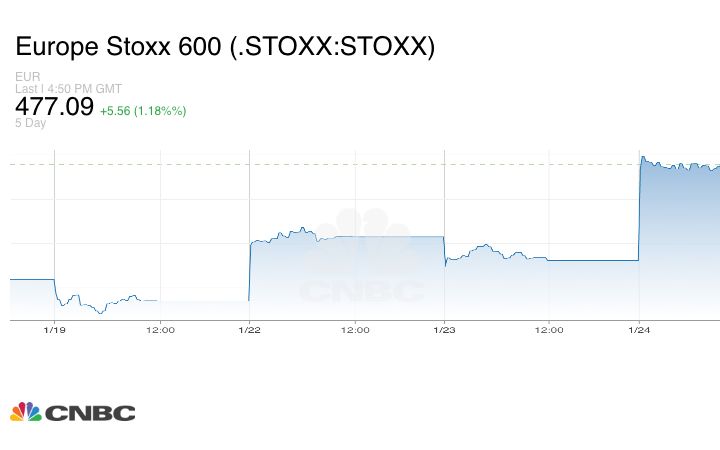 أغلق مؤشر Stoxx 600 الأوروبي مؤقتاً مرتفعاً بنسبة 1.15%، مع استبعاد جميع القطاعات قطاع الاتصالات في المنطقة الإيجابية.