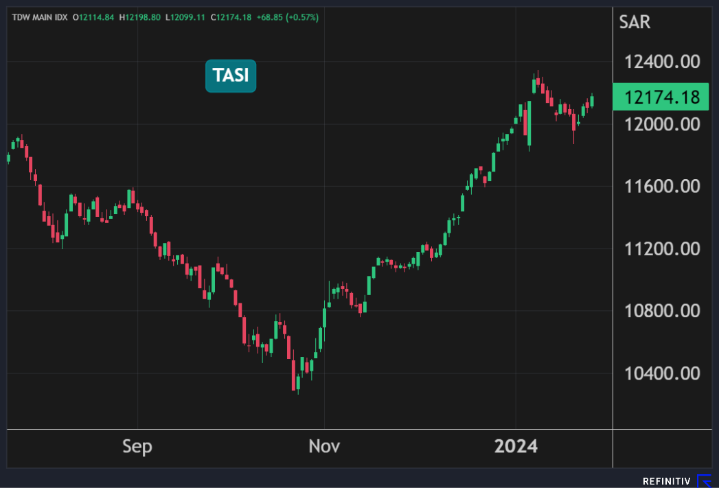 كما ارتفع سهم أرامكو بنسبة 0.2% بالتزامن مع استعادة خام برنت لمستويات 80 دولاراً للبرميل.