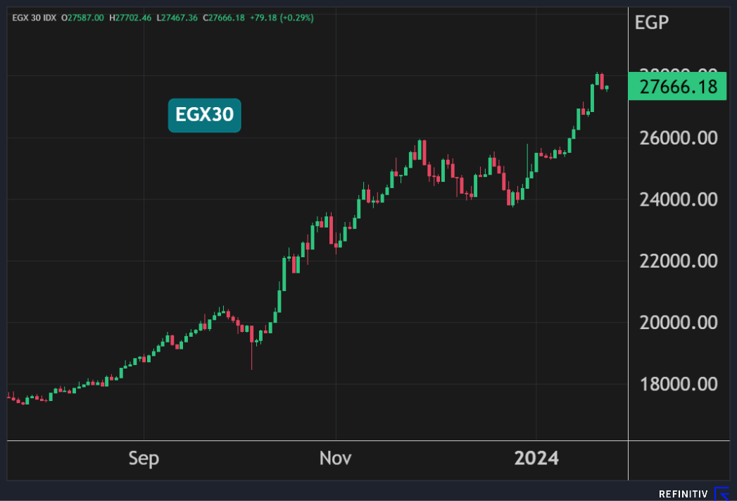 وارتفع المؤشر الثلاثيني بنسبة 0.3% بضغط من ارتفاع سهمي طلعت مصطفى والشرقية للدخان بنسبة 8% و1.4% على التوالي.