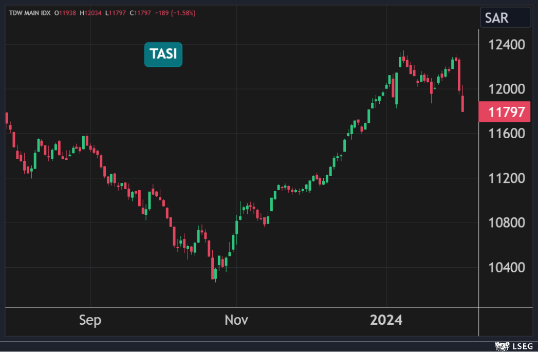 كما هبط سهم مصرف الراجحي بنسبة 4.7% ليتكبد أكبر خسارة يومية له في أكثر من عام بعد أن أعلن المصرف عن انخفاض أرباحه بنسبة 3% إلى 16.6 مليار ريال في عام 2023.