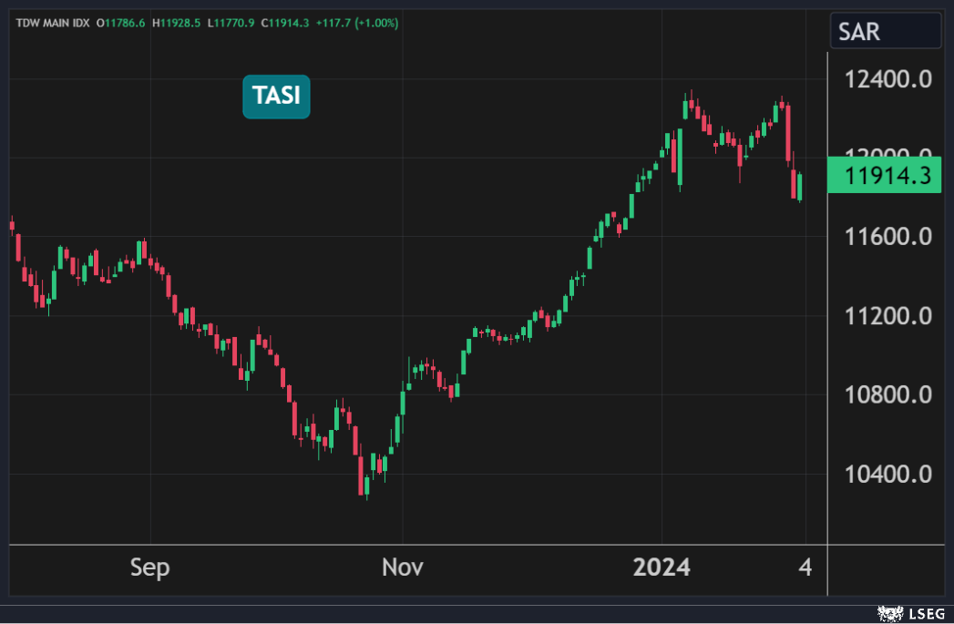 وعلى مدار الأسبوع، تراجع المؤشر السعودي بنسبة 2% مسجلاً أكبر خسارة أسبوعية في 3 أشهر.