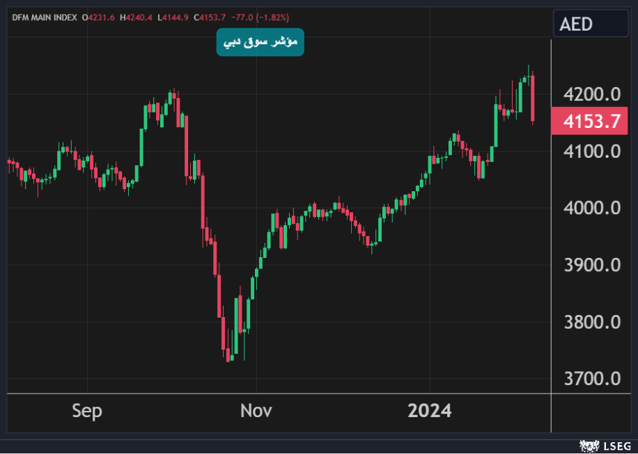 •    مؤشر سوق دبي يسجل أكبر خسارة يومية في أكثر من 3 أشهر