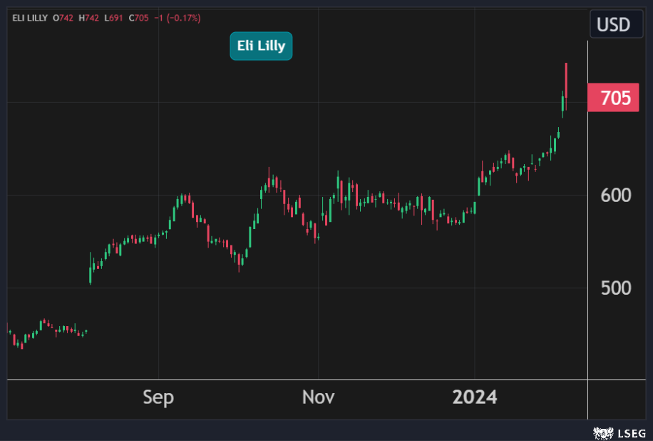 أغلق سهم Eli Lilly متراجعاً بنسبة 0.1% بضغط من جني الأرباح بعد أن وصل لأعلى مستوياته على الإطلاق خلال جلسة الثلاثاء عقب إعلان الشركة عن أرباح أعلى بكثير من التوقعات.