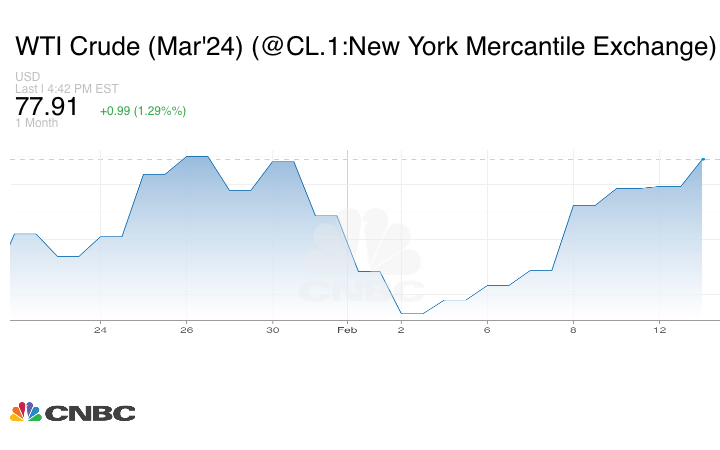 وزاد خام غرب تكساس الوسيط الأميركي 95 سنتاً أو 1.24 % إلى 77.87 دولار للبرميل عند التسوية.