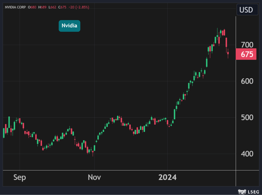 أعلنت Nvidia بعد الجلسة عن نتائج بأعلى من التوقعات بعد بلغت ربحية السهم 5.15 دولاراً مقارنة مع التوقعات البالغة 4.64 دولاراً للسهم.