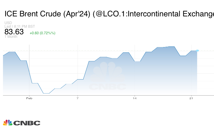 أضاف خام برنت لعقد أبريل/ نيسان 55 سنتاً، أو 0.66%، إلى 83.58 دولاراً للبرميل.