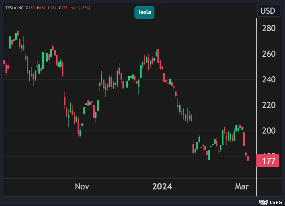 وجاءت هذه الخسائر بعد خفض بنك Morgan Stanley السعر المستهدف للسهم إلى 320 دولارًا من 345 دولارًا وسط مخاوف من استمرار التأخر في الطلب على السيارات الكهربائية على الرغم من تخفيضات الأسعار.