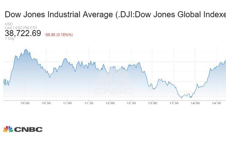 وتراجع المؤشر Dow Jones الصناعي 68.66 نقطة أو بنسبة 0.18% إلى 38722.69 نقطة.