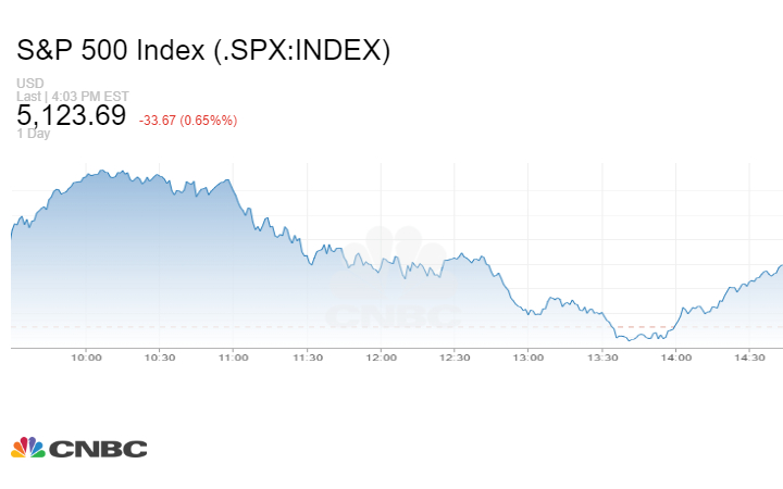 وأغلق مؤشر S&P 500 على انخفاض 33.67 نقطة أو 0.65% إلى 5123.69 نقطة.