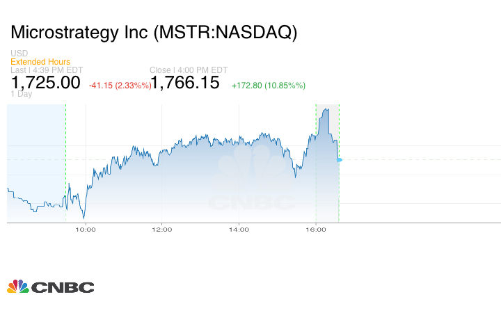واليوم الأربعاء، ارتفع سهم شركة MicroStrategy، وهي شركة لتطوير البرمجيات ولكنها تعمل في المقام الأول كوكيل للبتكوين،