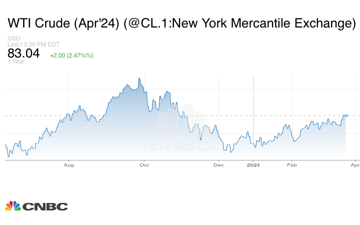 في حين ارتفع خام غرب تكساس الوسيط الأميركي 1.88 دولار، أو 2.32%، إلى 82.92 دولار.