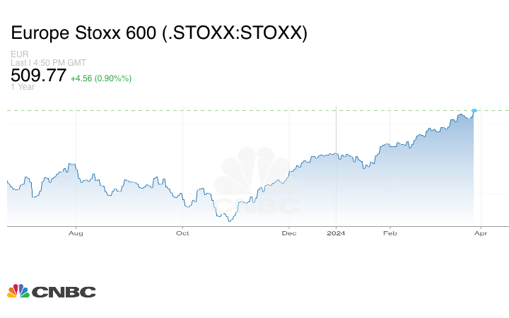 وقفز مؤشر مؤشر Stoxx 600 الأوروبي متجاوزاً الرقم القياسي الذي سجله في وقت سابق من الشهر الجاري ليغلق عند 509.95 نقطة. وجرى تداول جميع القطاعات تقريباً في المنطقة الخضراء، مع ارتفاع أسهم التكنولوجيا بنسبة 3.2% بينما انخفضت قطاعات المرافق بنسبة 0.39%.
