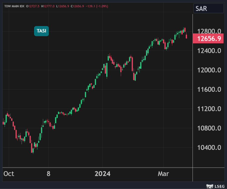 وجاء الدعم بشكل رئيسي من القطاع المصرفي وتحديداً من سهم مصرف الراجحي الذي هيط بنسبة 3.5% مع بدء التداول على السهم دون أحقية التوزيعات النقدية البالغة 1.15 ريالاً لكل سهم عن النصف الثاني 2023.