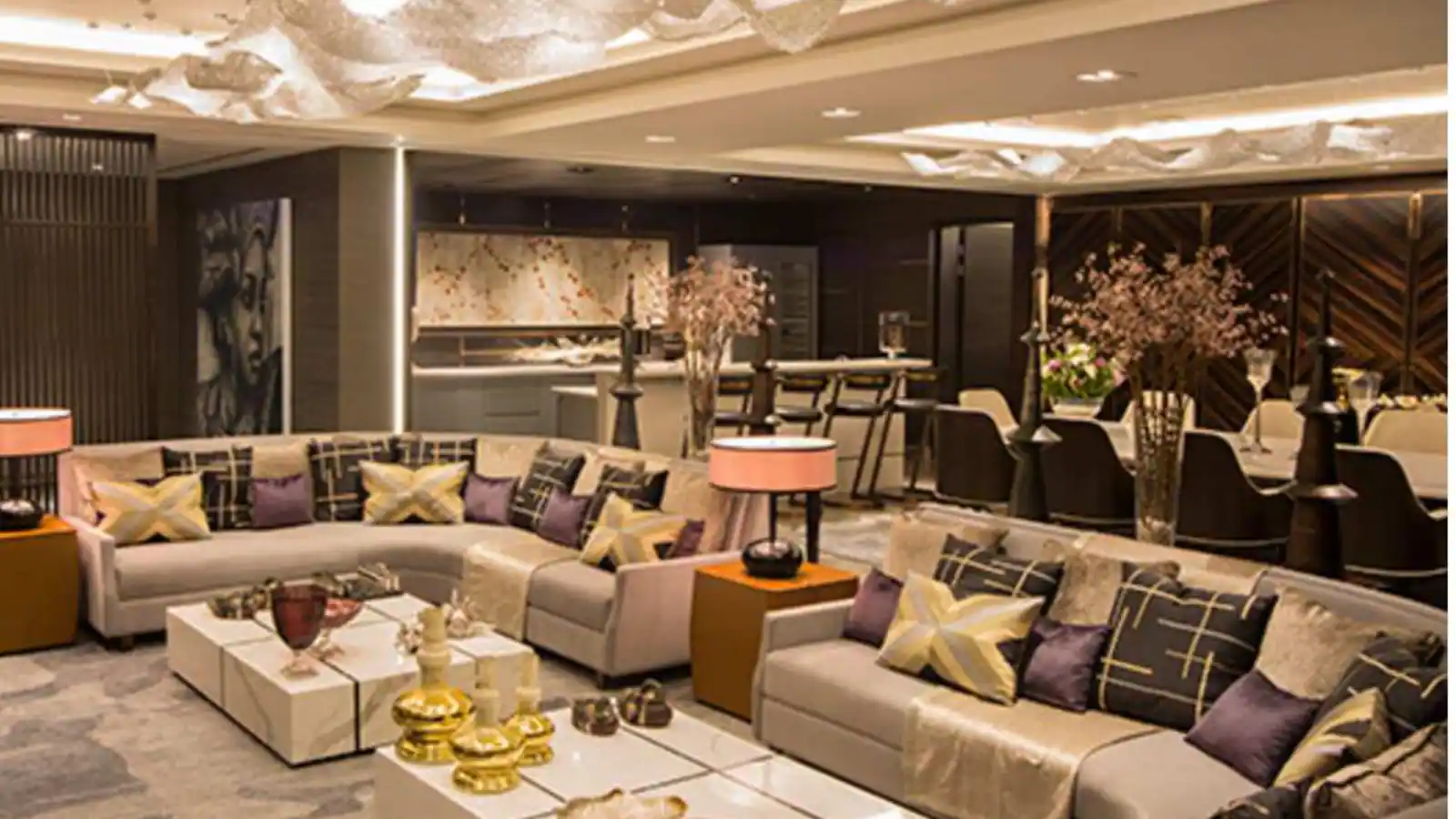 وقاعة الاحتفالات التي تعد واجهة فاخرة لاستقبال ضيوف عائلة أمباني، تشبه قصر فرساي الفرنسي العريق، معثرياتها الكريستالية، وأعمال الجص الذهبية المعقدة، والأرضيات الرخامية الباهظة الثمن.