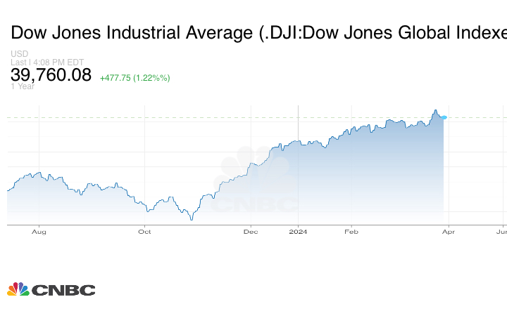ولا يزال مؤشر داو جونز في طريقه لاختراق مستوى 40 ألف نقطة للمرة الأولى.