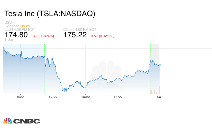 وتزامن مع تراجع سهم شركة السيارات الكهربائية، أفضل أداء لربع سنوي أول لمؤشر S&P500 منذ 5 سنوات، مع تسجيل المؤشرات الأميركية الثلاثة مستويات قياسية.