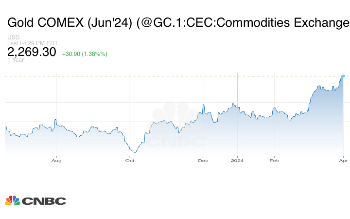 صعدت أسعار الذهب إلى مستوى قياسي آخر، الاثنين، مدفوعة بتوقعات خفض أسعار الفائدة الأميركية بعد مؤشرات نمو القطاع الصناعي الأميركي وجاذبية المعدن كأصل ملاذ آمن.